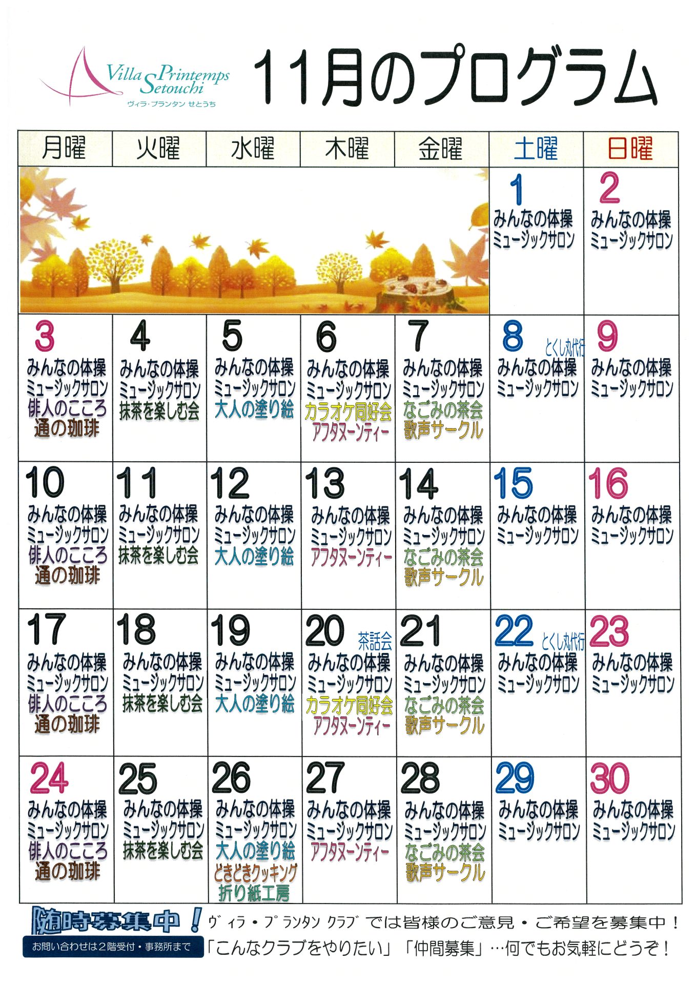 Topicsトピックス 2025.10.30 (thu) 11月のプログラム 11月のプログラムができました。 ゲスト様に喜んでいただけるよう企画しています。 2025.10.30 (thu) ご家族を困惑させた認知症の問題行動 坂本恵子様(仮名) 2017年入居 79歳 入居時 要介護 2 坂本様は2012年にご主人を癌で亡くされ、その後はデイサービスを利用しながら独居生活を続け [ … ] 2025.10.29 (wed) 「親を介護する自信」について 私たちは介護のプロです。 介護に関する技術や知識、制度なども知っています。 そのうえでお伝えしたいことがあります。 技術や知識があっても、家族だからこそ、時には [ … ] 2025.10.25 (sat) メニュー表(10/27~11/2) 10月27日~11月2日のメニュー表です。 2025.10.18 (sat) メニュー表(10/20~10/26) 10月20日~10月26日のメニュー表です。 2025.10.11 (sat) メニュー表(10/13~10/19) 10月13日~10月19日のメニュー表です。 2025.10.04 (sat) メニュー表(10/6~10/12) 10月6日~10月12日のメニュー表です。 2025.09.30 (tue) 10月のプログラム 10月のプログラムができました。ゲスト様に喜んで頂けるよう企画しています。 2025.09.28 (sun) メニュー表(9/29~10/5) 9月29日~10月5日のメニュー表です。 2025.09.21 (sun) メニュー表(9/22~9/28) 9月22日~9月28日のメニュー表です。 ‹ 12 3 ...› » 最近の投稿 11月のプログラム ご家族を困惑させた認知症の問題行動 「親を介護する自信」について メニュー表(10/27~11/2) メニュー表(10/20~10/26) アーカイブ 2025年10月 2025年9月 2025年8月 2025年7月 2025年6月 2025年5月 2025年4月 2025年3月 2025年2月 2025年1月 2024年12月 2024年11月 2024年10月 2024年9月 2024年8月 2024年7月 2024年6月 2024年5月 2024年4月 2024年3月 2024年2月 2024年1月 2023年12月 2023年11月 2023年10月 2023年9月 2023年8月 2023年7月 2023年6月 2023年5月 2023年4月 2023年3月 2023年2月 2023年1月 2022年12月 2022年11月 2022年9月 2022年8月 2022年7月 2022年6月 2022年5月 2022年4月 2022年3月 2022年2月 2022年1月 2021年12月 2021年11月 2021年10月 2021年9月 2021年8月 2021年7月 2021年6月 2021年5月 2021年4月 2021年3月 2021年2月 2021年1月 2020年12月 2020年11月 2020年10月 2020年9月 2020年8月 2020年7月 2020年6月 2020年5月 2020年4月 2020年3月 2020年2月 2020年1月 2019年12月 2019年11月 2019年10月 2019年9月 2019年8月 2019年7月 2019年6月 2019年5月 2019年4月 2019年3月 2019年2月 2019年1月 2018年12月 2018年11月 2018年10月 2018年9月 2018年8月 2018年7月 2018年6月 2018年5月 2018年4月 2018年3月 2018年2月 2018年1月 2017年12月 2017年11月 2017年10月 2017年9月 2017年8月 2017年7月 2017年6月 2017年5月 2017年4月 カテゴリー イベント お客様の声 お知らせ ご案内 メニュー表 施設を考える 未分類