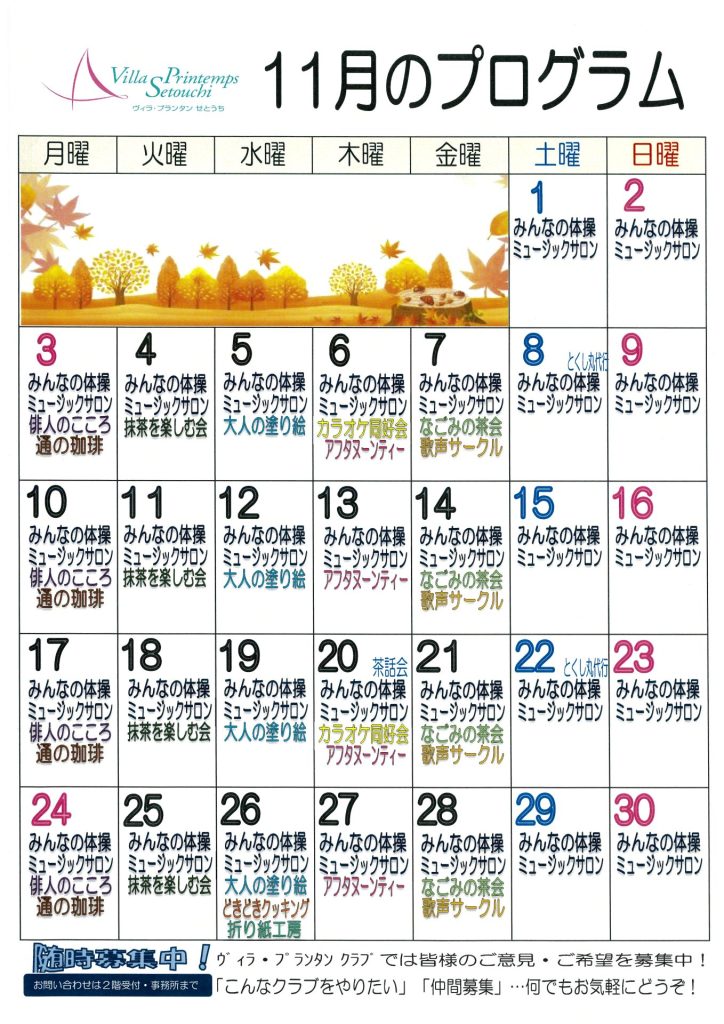 11月のプログラムができました。 ゲスト様に喜んでいただけるよう企画しています。